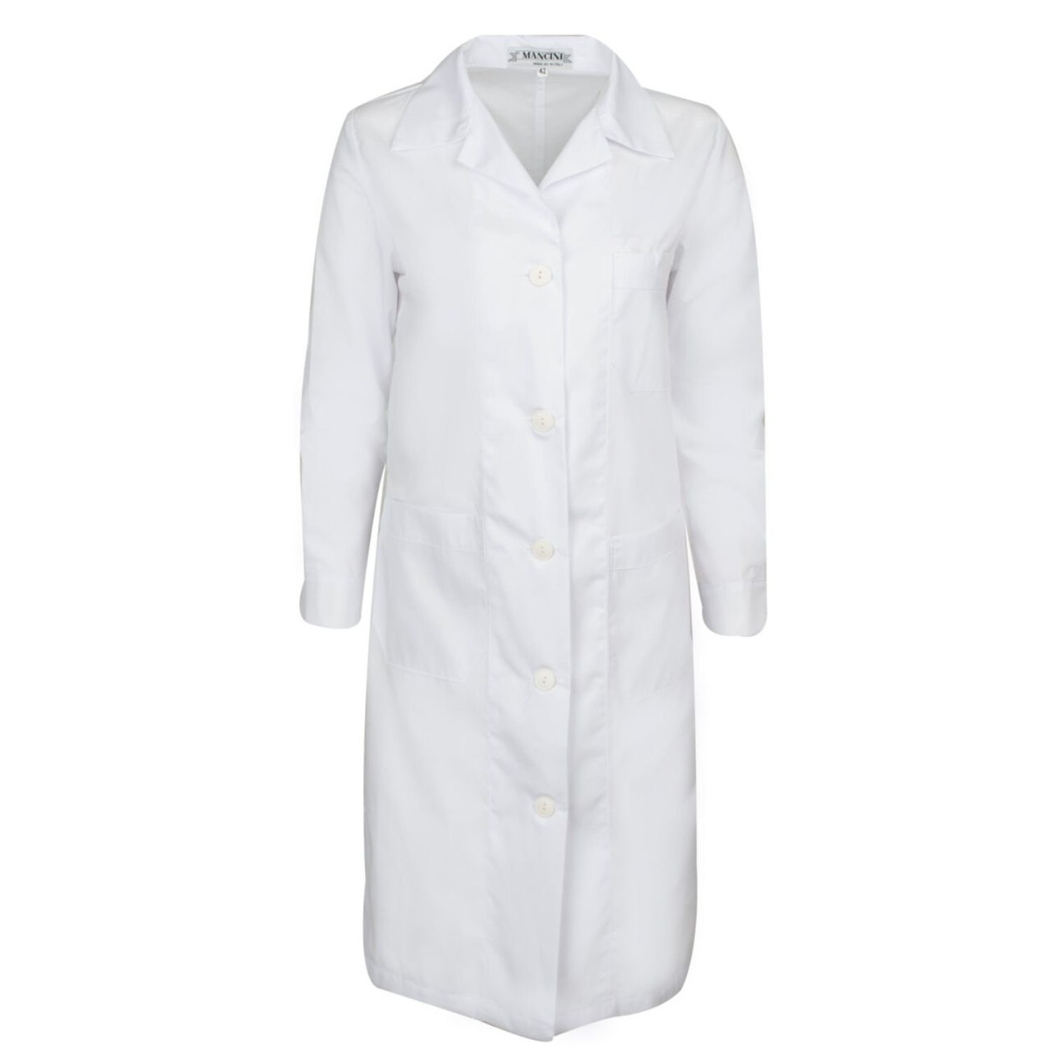 • Γυναίκεια ποδιά μακριά με κολάρο πέτου και ζώνη στο πίσω μέρος.