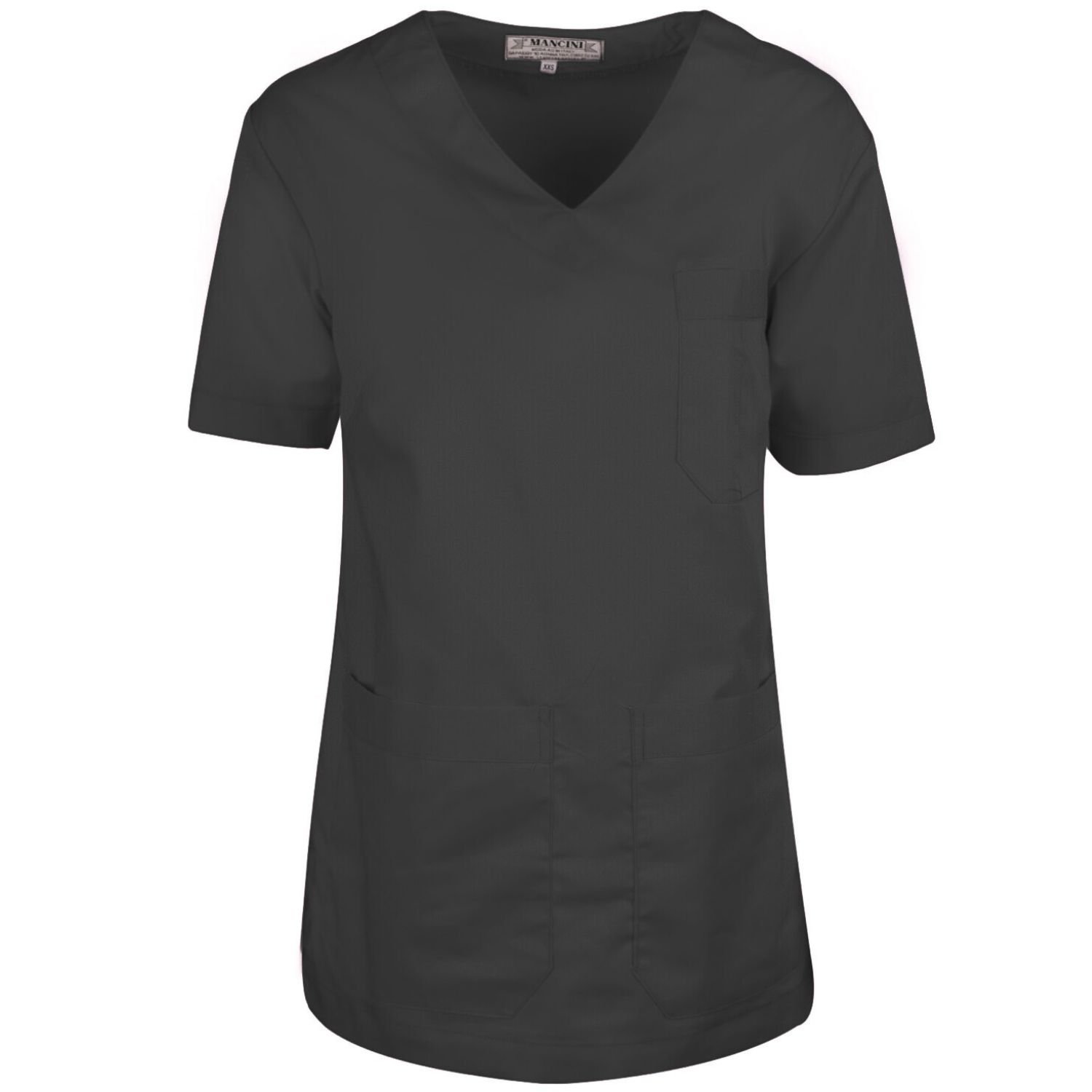 Ιατρική μπλούζα με V μπροστά σε μαύρο