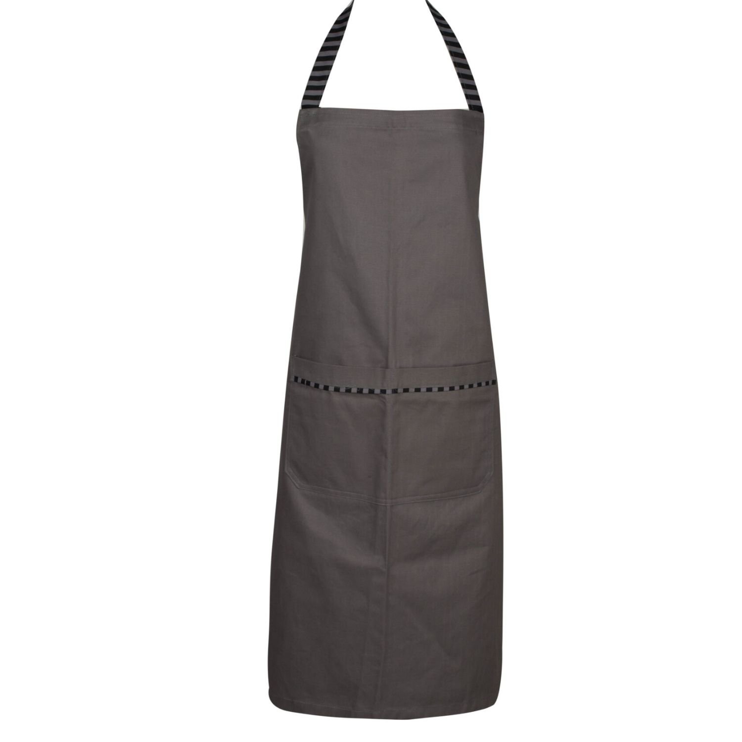 • Ποδιά ολόσωμη γκρι με ριγέ τιράντα.
