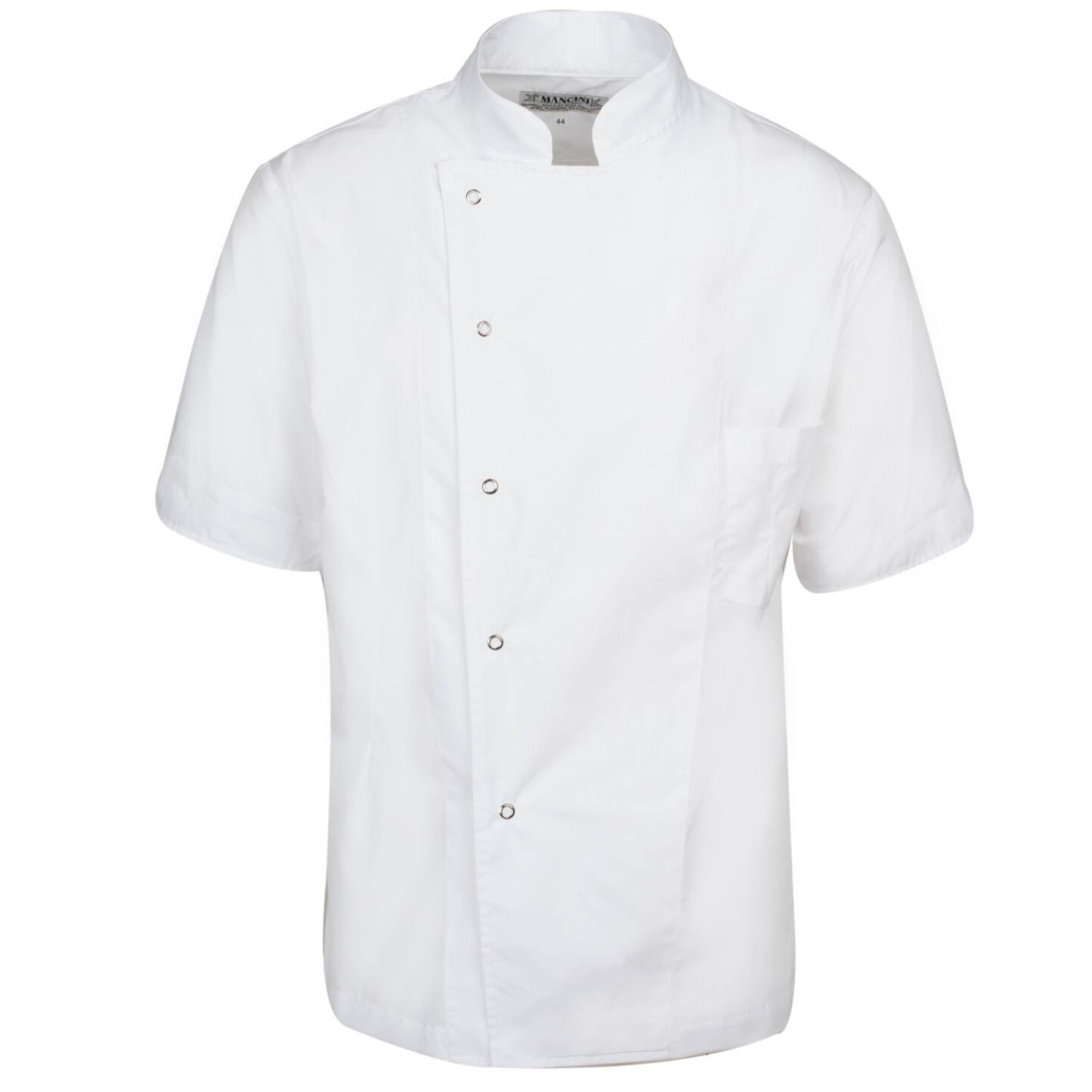- Σακάκι σεφ κοντό μανίκι και κούμπωμα με τρουκ.
